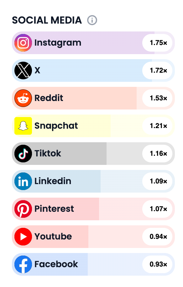 LaCroix’s audience is 1.75x more likely to engage on Instagram, followed by X and Reddit. TikTok barely made the top 5. And this is the exact trap that so many marketers unknowingly fall into. They rely on general statistics and preconceived notions instead of an audience-first approach—wasting valuable marketing dollars and time, all while prioritizing the wrong channels. Don’t assume your ideal customer profile follows the same trends as the general population.